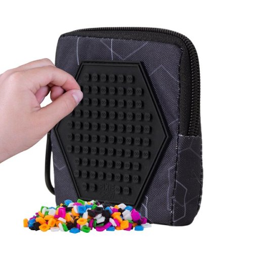 Viacúčelové malé puzdro na každodenné použitie. Puzdro je vyrobené z kombinácie praktického silikónu, ktorý chráni obsah puzdra pri nárazoch a pádoch, a štýlové látky. Veľmi ľahko sa udržuje, stačí jednoducho utrieť vlhkou handričkou alebo hubkou. Puzdro je v hornej časti uzatvárateľné na zips a po strane na pútku je pripevnená karabína. Vnútorný priestor je vhodný na drobnosti dennej potreby ako napr. kozmetické potreby, kreditné karty, peniaze, kľúče a iné drobnosti. Na prednej strane je umiestnený unikátny silikónový PIXIE CREW creative panel TM čiernej farby, šesťuholník, k dispozícii máte teda 83 bodov pre nekonečné množstvo motívov na každý deň vďaka PIXIES (pixelom), ktoré môžete kedykoľvek zložiť a vymeniť za iné. Ku každému puzdru zadarmo prikladáme balíček približne 50 ks malých PIXIES (pixelov). Rozmery balenia: 10 x 10 x 2 cm. Vek: 5+