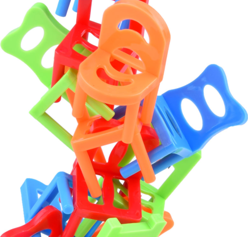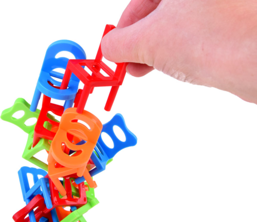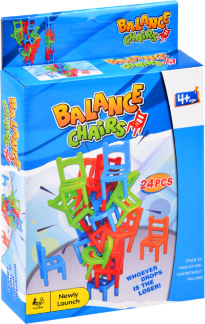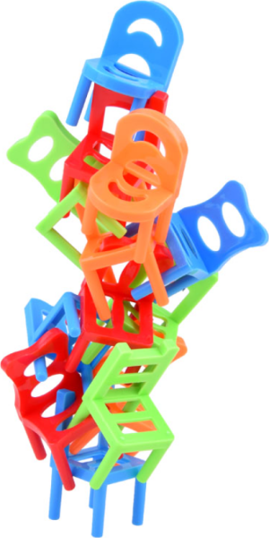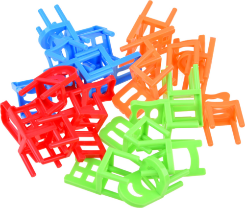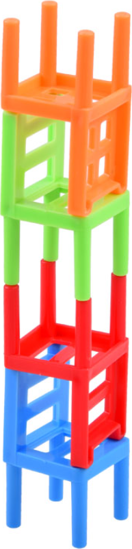 Hráči stavajú vežu tak, že skladajú stoličky jednu na druhú. Dôležité je nedotýkať sa rúk stoličky, ktorá už na veži stojí. Víťazom sa stáva ten, kto ako prvý umiestni všetky svoje stoličky (vo svojej farbe). Ideálne pre zábavu vonku, doma, na dovolenke aj na cestách.