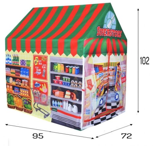 Detský stan s motívom predajne potravín - ideálna pomôcka pri hre na obchod.