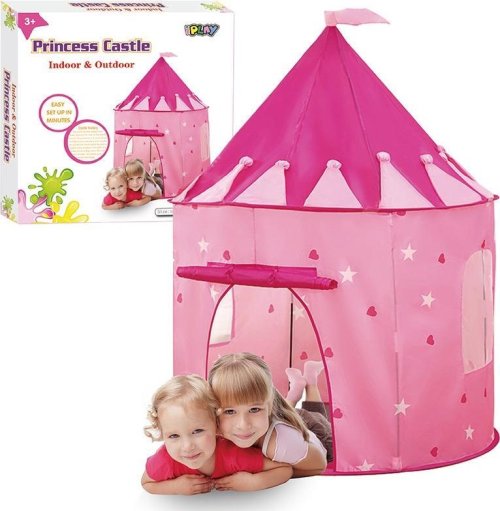 Krásny detský stan vhodný na záhradu aj do interiéru. Vďaka pastelovej ružovej sa bude hodiť do detskej izbičky a vytvorí kúzelný herný alebo odpočinkový kútik. Stan má ľahkú o odolnú konštrukciu, jedno okno a vchod. Ružovú potlač dopĺňajú srdiečka a strieška je zdobená plyšovými brmbolcami. Rozmery zloženého stanu 125 x 105 x 105 cm. Vhodné pre deti od 3 rokov.