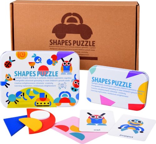 Drevené puzzle tangram je skvelá kreatívna hračka, ktorá zabaví dieťa na celé hodiny a zároveň podporí jeho rozvoj. Zábava spočíva v usporiadaní správneho obrázku podľa priložených kartičiek - stačí usporiadať kocky podľa vzorov nakreslených na kartičkách. Tangram ponúka mnoho možností, okrem obrázkov podľa kartičiek je možné dieliky vyskladať do ľubovoľných obrázkov alebo tvarov, ktoré dieťa vymyslí. Obrázky na kartách sú popísané v angličtine, a celá hra tak môže slúžiť aj ako zábavný pomocník pri učení angličtiny. Hra je zabalená v praktickej kovovej krabičke. Súprava obsahuje: