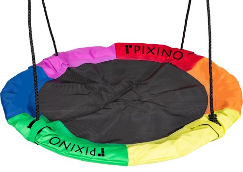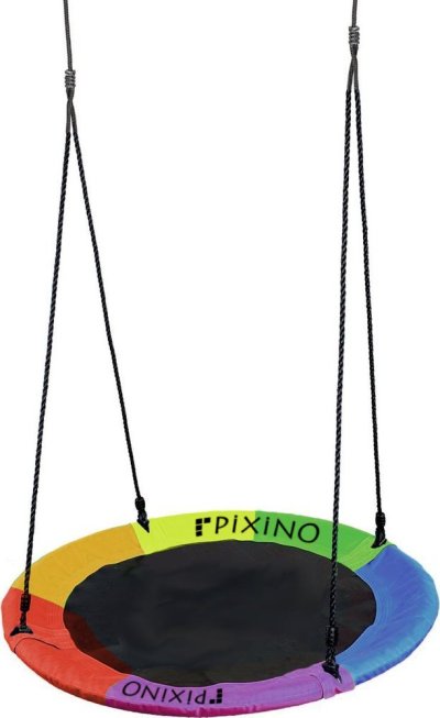 Hojdací kruh Čapí hniezdo PIXINO vo farebnom prevedení je ideálny pre vonkajšie aj vnútorné použitie a Vaše deti si ho zamilujú. Sedadlo hojdačky je vyrobené z vysoko kvalitného polyesteru, ktorý je odolný voči poveternostným vplyvom a opotrebovaniu. Pozinkovaný rám je chránený penovým polstrovaním tak, aby bolo Vaše dieťa v bezpečí a zároveň malo pohodlie pri hojdaní. Čapí hniezdo má priemer sedadla 110 cm a maximálnu nosnosť 150 kg . Dve závesné laná sú výškovo nastaviteľné, a to až do 160 cm. Hrúbka závesných lán je 1 cm. Hojdačka sa zavesuje za kovové krúžky, ktoré sú prevlečené na závesných lanách. Vhodné pre deti od 3 rokov.