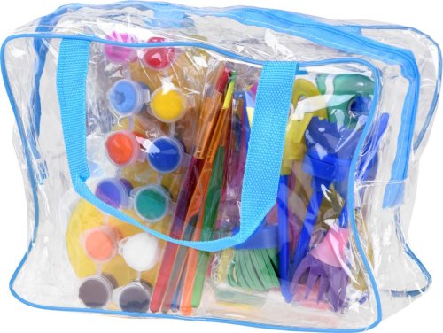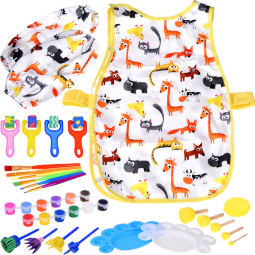Každý malý umelec potrebuje poriadny priestor a pomôcky na kreativitu. Táto sada ochráni oblečenie malého maliara a zaistí všetky pomôcky, ktoré by mohol potrebovať. Sada obsahuje: - 4 x valček so vzorom - 4 x štetce s penovou špičkou - 6 x štetcov rôznej hrúbky - 5 x pečiatkovacích hubiek na tyčinkách (rôzne veľkosti) - pečiatkovacia hubka - 2 x paletu na farby (modrá a biela) - 2 x farby (12 farieb) - ochranná zástera - 2 x ochranné návleky na ruky - taška na príslušenstvo. Rozmery: - rukávy: dĺžka: 25 cm, šírka pása: cca 6,5 cm - zástera: 49 x 34 cm - paleta 16 cm x 10,5 x 1 cm - valček 13,5 cm x 6 cm - dĺžka štetcov: cca 13 cm -15 cm - rozmer pečiatok s hubkou: cca 8 cm - 10 cm - priemer hubky: cca 8 cm - štetce s penovou špičkou: cca 10 cm. Zabalené v darčekovej krabičke = perfektný darček pre malých kuchárov!