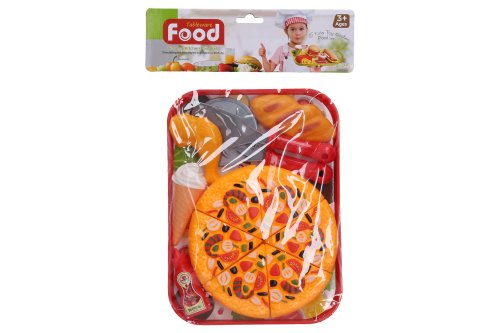 Pizza krájací set. Veľkosť 26cm. Obsahuje tácku, pizzu, príbor, jedlo.