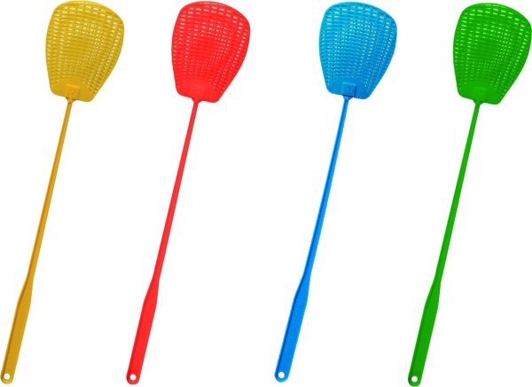 Praktická plácačka na muchy vo farbe žltej, červenej, modrej a zelenej.