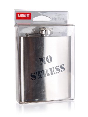Nerezová ploskačka AKCENT s potlačou ''No Stress', s objemom 203 ml (7oz) je vhodná na mušty a liehové nápoje. Vďaka svojmu tvaru je ploskačka skvelým spoločníkom na cesty.