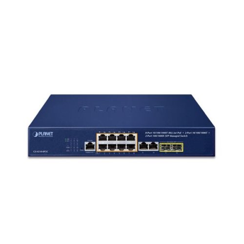 Spravovateľný PoE prepínač ponúka 10 portov 10/100/1000 Base-T a 2 SFP sloty 100/1000 Base-X . Z toho 8 portov podporuje 802.3at PoE+ (port 1-8).