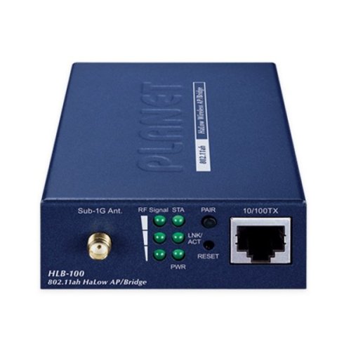 PLANET HLB-100 predstavuje výkonné riešenie pre bezdrôtovú konektivitu v priemyselných a IoT aplikáciách. Vďaka technológii Wi-Fi HaLow (IEEE 802.11ah) operujúcej v sub-GHz pásme (868 MHz) poskytuje mimoriadny dosah až 1 kilometer pri zachovaní nízkej spotreby energie. Zariadenie podporuje tri prevádzkové režimy - prístupový bod (AP), klient (Station) a brána (Gateway) , čo umožňuje flexibilné nasadenie v rôznych sieťových topológiách.