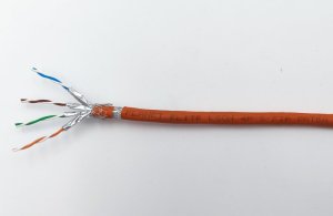 Kábel je vybavený dvojitým tienením - celkovým opletením a navyše individuálnym tienením každého páru fólií, čo poskytuje vynikajúcu ochranu proti elektromagnetickému rušeniu. Oranžový plášť z bezhalogénového materiálu LS0H (Low Smoke Zero Halogén) s požiarnou triedou B2ca zaisťuje vysokú bezpečnosť v prípade požiaru - minimálnu tvorbu dymu a žiadne toxické halogény.