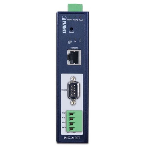 Priemyselná brána MODBUS s konverziou 1x RS-232 (DB9) + 1x 4pin svorkovnica RS-485/422 na protokol TCP/IP ( RJ-45 port 100Base-TX). Typ sériovej komunikácie je voliteľný RTU/ASCII, master/slave.