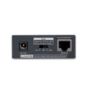 Gigabitový splitter pre napájanie po Ethernetovom kábli. Časť pre priame napájanie vzdialených zariadení do príkonu až 60 W. Voliteľné výstupné napätie 12/19/24 V DC, prepínanie DIP prepínačom. Inštalácia desktop alebo do šasi.