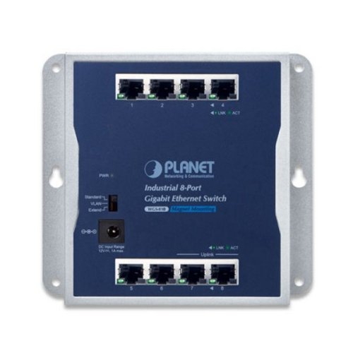Gigabitový priemyselný prepínač s 8 x RJ-45 10/100/1000Base-T porty. Inštalácia na stenu (fixne/magneticky) alebo na DIN lištu priamo do rozvádzačov. Kovové prevedenie IP30 , konštrukcia je odolná voči pádu a vibráciám. DIP prepínač (štandard/VLAN/extend mód), ESD ochrana do 4 kV, bez ventilátorov, napájanie 12 V DC.