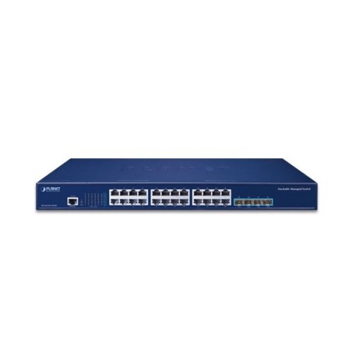 Stohovateľný riadený L3 switch, 24x RJ-45 10/100/1000 Base-T, 4x 10G SFP+ Base-SR/LR , 1x RJ-45 (RS-232) konzolový port.