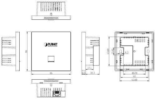 Dvojpásmový Wi-Fi 6 access point s podporou centrálneho manažmentu cez NMS kontrolér pre vysokorýchlostné podnikové riešenie. Inštalácia do steny prostredníctvom štandardnej európskej zásuvkovej krabice s rozmermi 86 × 86 mm . Pracuje na frekvencii 2,4 GHz a 5 GHz štandardu 802.11a/b/g/n/ac/ax a vďaka tomu ponúka rýchlosť až 3000 Mbps . Štyri integrované antény so ziskom 1,7 dBi postačia na kompletné pokrytie kancelárskych aj iných priestorov. Podporuje aj technológie OFDMA, MU-MIMO, Beamforming a BSS Coloring . Veľkou prednosťou je možnosť vytvorenia Mesh siete spojením viacerých prístupových bodov v jednej vetve. Pokročilé zabezpečenie vďaka šifrovanému prenosu dát podľa protokolov WPA/WPA2/WPA3 účinne zabráni odpočúvaniu neoprávnenými užívateľmi. Napájanie jednotky je riešené cez PoE+ 802.3at , príkon do 12 W.