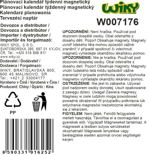 Pre prehľad v schôdzkach, jednoduchšie plánovanie pracovného týždňa či zapisovanie školských úloh je magnetický týždenný plánovač ideálny. Kedykoľvek môžete použitím suchej stierky napísaný text zmazať a prepísať stieracou fixkou.
