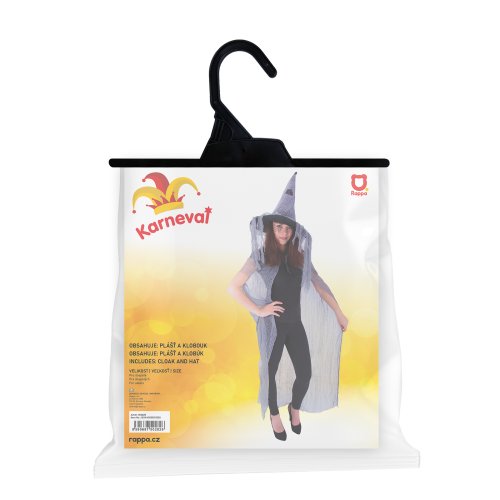 Perfektná súprava pre dospelých na Halloween párty alebo karneval! Balenie obsahuje čarodejnícky plášť šedej farby a perfektne zladený klobúk. V týchto exkluzívnych doplnkoch ťa zaručene nikto neprehliadne!