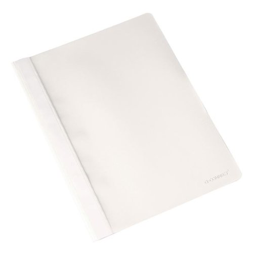 Plastové rýchloviazače našej privátnej značky Q-Connect, kvalitné ľahké zložky na usporiadanie perforovaných dokumentov s priehľadnou prednou stranou a nepriehľadnou farebnou zadnou stranou
