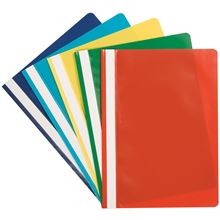 • Plastové rýchloviazače našej privátnej značky Q-Connect, kvalitné ľahké zložky na usporiadanie perforovaných dokumentov s priehľadnou prednou stranou a nepriehľadnou farebnou zadnou stranou