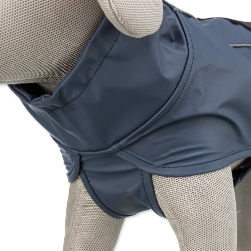 Pláštenka s vyšším krkom. Nastaviteľná okolo krku a cez brucho.