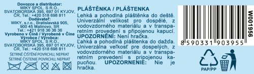 Detská pláštenka sa bude hodiť do daždivého počasia. Ľahká a pohodlná pláštenka do dažďa. Univerzálna veľkosť pre dospelých, z vodovzdorného materiálu av transparentnom prevedení s pripojenou kapucňou. Rozmery balenia 14 x 22 x 2 cm. Univerzálna veľkosť pre dospelých.