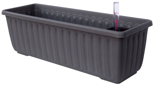 Plastový samozavlažovací kvetináč Siesta LUX obsahuje jednu vložku, dve vyrovnávacie nožičky, jednu sponu, raz hladinomer a dva knôty.