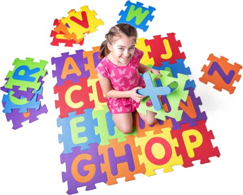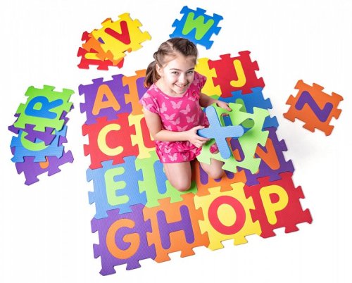 Penové puzzle s vyberateľným stredom zoznámia deti s rôznymi písmenami. Jednotlivé penové diely sú vyrobené v rôznych farbách a písmen z abecedy. Možno ich ľahko zostaviť a použiť nielen ako stavebnicu, ale aj ako podložku na zem. Sú netoxické, bezpečné a umývateľné. Táto hračka rozvíja manuálnu zručnosť a podporuje fantáziu dieťaťa. Veľkostne ideálny pre malé ručičky. Počet dielov: 60. Rozmer: štvorec 26 ks: 32x32cm. Vek: 3+