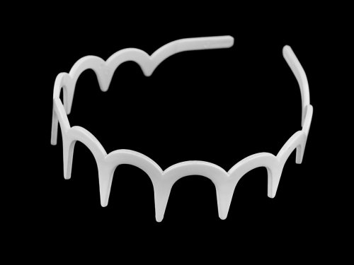 Plastová čelenka s oblúčikmi a veľkými zubami má lesklý a hladký povrch. Je vyrobená z kvalitného plastu, veľmi dobre vo vlasoch drží. Môžete ju využiť ako základ na ďalšie dozdobenie a vytvoriť si tak jedinečný kúsok priamo na mieru pre vás. Ozdoby môžete nalepovať najlepšie lepidlom na textil alebo tavnou pištoľou.