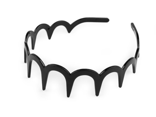 Plastová čelenka s oblúčikmi a veľkými zubami má lesklý a hladký povrch.