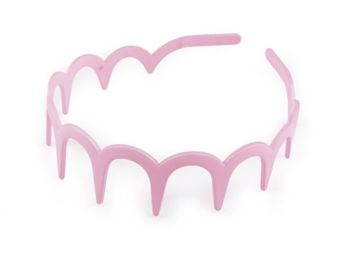 Plastová čelenka s oblúčikmi a veľkými zubami má lesklý a hladký povrch. Je vyrobená z kvalitného plastu, veľmi dobre vo vlasoch drží. Môžete ju využiť ako základ na ďalšie dozdobenie a vytvoriť si tak jedinečný kúsok priamo na mieru pre vás. Ozdoby môžete nalepovať najlepšie lepidlom na textil alebo tavnou pištoľou.