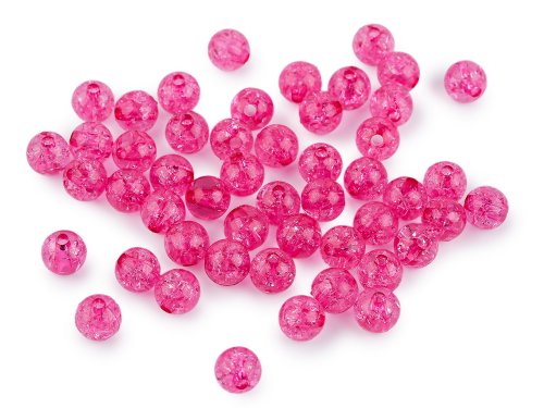 Plastové korálky s efektom kraklé, teda prasklín, ľudovo nazývaných práskačky, sú veľmi variabilné. Majú všetky výhody plastových korálikov - sú ľahučké, majú dostatočne veľký prievlak, aby nimi prešli aj stužky alebo voskované šnúry. Vzhľadom na spôsob spracovania plastov upozorňujeme, že na niektorých korálkoch môžu byť na pohľad či na dotyk viditeľné zvyšky spojov. [V balení 30 g je cca 106-110 ks korálikov.]