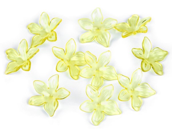 [Pôvabný plastový kvet v transparentných farbách nadchne predovšetkým korálkárky, ktoré rady tvoria kvetinové šperky. Je veľmi ľahký, vhodný aj na náušnice. Kvet môžete využiť ako sukienku na výrobu ketlovaných anjelikov, viď naše ilustračné foto. Na našom špecializovanom webe nájdete detailný fotonávod na výrobu anjelikov.]