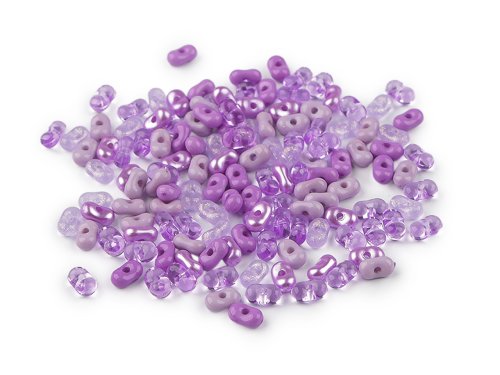 Malé plastové korálky majú zaujímavý tvar arašidov. Na oboch koncoch sú bucľaté, uprostred stlačené, prievlak majú umiestnený uprostred korálku. Po navlečení vedľa seba vytvára zaujímavý 3D efekt. Majú sýte farby, sú veľmi kvalitné, všade hladké, nemajú žiadne otrepenie alebo viditeľné švy. Využijete ich na výrobu bižutérie a zdobenie odevov, tašiek či dekorácií do bytu. V balení 10 g je cca 210 ks korálikov.