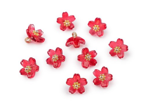 Plastové korálky / prívesky kvet na výrobu bižutérie a príveskov Ø10 mm - červená (10 ks)
