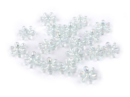 Plastové korálky v tvare kvetu nadchnú deti aj dospelých. Sú doslova magické, pretože sú transparentné, ale ich povrch má vysoký lesk s AB efektom. Našim fotografom sa fotografie veľmi podarili, ale verte, že v skutočnosti sú korálky ešte zaujímavejšie. Korálky môžete použiť na výrobu náhrdelníkov, náramkov, príveskov ku kľúčom a pod. Prievlak je umiestnený cez celú korálku - od špičky lístka stredom do špičky protiľahlého lístka - po navlečení sa kvety radí naplocho vedľa seba. Balenie 10 g obsahuje cca 18 ks korálikov.