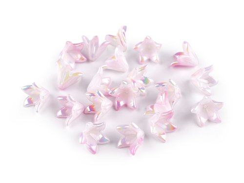 Plastové korálky kvetov v tvare zvončeka nadchnú deti aj dospelých. Sú doslova magické, pretože majú vysoký perleťový lesk s AB efektom. Ocenia ich korálkárky, ktoré rady tvoria kvetinové šperky alebo malých anjelikov. Korálky môžete použiť na výrobu náhrdelníkov, príveskov ku kľúčom, ako sukienku na korálkové anjeliky, hodia sa aj na ozdobenie tašiek a pod. Ich veľkou výhodou je nízka hmotnosť.