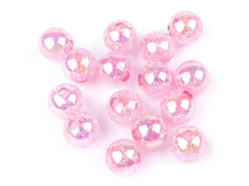 Väčšie plastové korálky nadchnú deti aj dospelých. Sú doslova magické, pretože majú vysoký lesk s AB efektom, navyše vo vnútri majú pôsobivé kraklé – praskliny, ktoré sa ľudovo nazývajú práskačky. Korálky sú veľmi kvalitné, všade hladké, nemajú žiadne otrepenie alebo viditeľné švy. Našim fotografom sa fotografie veľmi podarili, ale verte, že v skutočnosti sú korálky ešte zaujímavejšie. Môžete ich navliekať na silón, vďaka väčšiemu prievlaku aj na šnúrky alebo iný návlekový materiál. Korálky môžete použiť na výrobu náhrdelníkov, príveskov ku kľúčom, hodia sa aj na výrobu lapačov snov, na ozdobenie tašiek a pod.