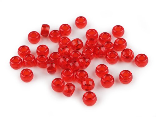 Transparentné plastové korálky s veľkým prievlakom využijete do krátkych aj dlhých náhrdelníkov alebo náramkov. Nie sú okrúhle, majú tvar nízkeho okrúhleho valčeka. Ich veľkou výhodou je ľahký materiál a väčší prievlak. Ako návlekový materiál sú vhodné šperkové šnúrky. Korálky môžete navliekať na väčšie množstvo tenkých šnúrok, ktoré sa medzi sebou rôzne uzľujú a zväzujú a tvoria tak zaujímavý celok. Korálky využijete nielen na výrobu bižutérie, ale aj na zdobenie odevov, tašiek alebo plaviek. Korálky sú vhodné iba na šetrné ručné pranie. Balenie 20 g obsahuje cca 74 ks korálikov.