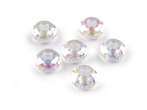 Plastové korálky s veľkým prievlakom Ø13 mm s AB efektom - transparent (6 ks)