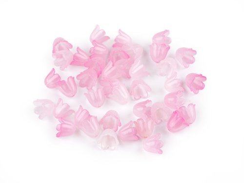 Plastové korálky kvetov v tvare zvončeka nadchnú deti aj dospelých. Majú zaujímavé prefarbenie. Ocenia ich korálkárky, ktoré rady tvoria kvetinové šperky alebo malých anjelikov. Korálky môžete použiť na výrobu náhrdelníkov, príveskov ku kľúčom, ako sukienku na korálkové anjeliky, hodia sa aj na ozdobenie tašiek a pod. Ich veľkou výhodou je nízka hmotnosť. V balení 10 g je cca 42 ks kvetov.