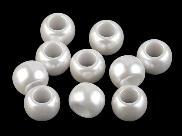 Plastové korálky s veľkým prievlakom majú efektný perleťový lesk. Sú ľahké a vhodné na výrobu náhrdelníkov, náramkov a pod. Korálky môžete navliecť na modistickú dutinku. Vytvoríte si tak originálny šperk. Korálky využijete nielen na výrobu bižutérie, ale aj na zdobenie odevov, tašiek alebo plaviek. [Sú obľúbené aj na techniku macrame alebo na výrobu lapačov snov.]Korálky sú vhodné iba pre šetrné ručné pranie. [Korálky č.6 - čierne, nemajú perleťový lesk.]