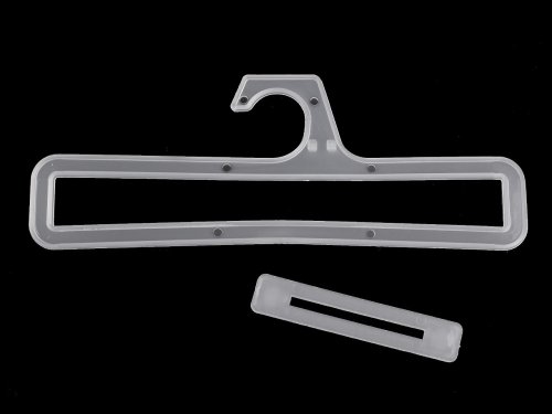 Plastové ramienko je vhodné pre predajne na vystavenie tovaru (šatky, metráže látok, vzorkovníkov a pod.). V prípade potreby [(pri tovare so závesom alebo s nejakým otvorom)] môžete do hornej časti vložiť priloženú zarážku a tovar zaistiť. Ramienko nie je otočné.