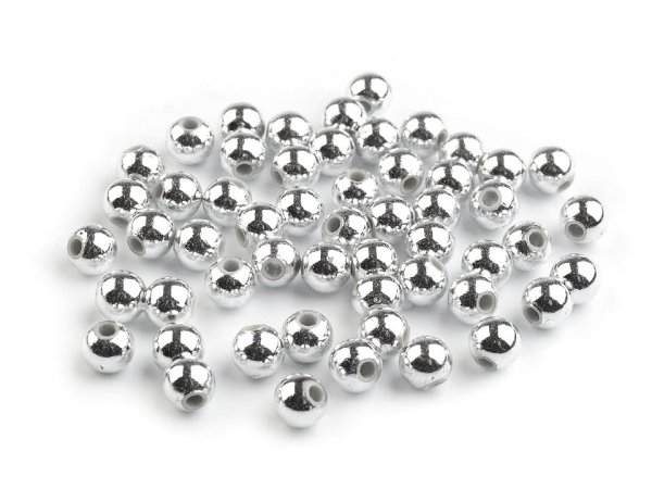 Výrazné plastové korálky v tvare guličky s metalickou, vysoko lesklou úpravou na povrchu. Verne imitujú korálky kovové, oproti ktorým sú ľahšie, takže vaše výrobky nezaťažia a nebudú studiť ako kov. Vašim výrobkom dodajú elegantný vzhľad. V sáčku po [20 g je cca 200 ks. ]