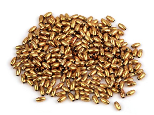 Plastové voskové korálky / perly Glance ryža 3x6 mm - zlatá str. (10 g)