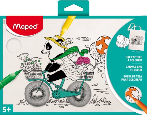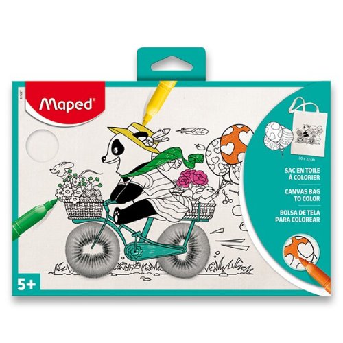 Plátená taška Maped s natlačenou predlohou, ktorú je možné vyfarbiť a vytvoriť tak zábavnou formou jedinečnú a originálnu plátennú tašku. Fixy sú vodou zmývateľné a po vypraní v práčke môžete vyfarbovať tašku znova a znova. Pri použití permanentných textilných popisovačov bude výsledok trvalý. Dostupné v dvoch variantoch. Veľkosť tašky 300 x 230 cm. Zloženie: 100% polyester. Vhodné pre deti od 5 rokov.