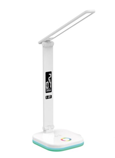 Lampa je vybavená multifunkčným displejom, ktorý zobrazuje čas, dátum aj teplotu v miestnosti. Nechýba ani vstavaný budík. Veľkou výhodou je aj integrovaná 5W bezdrôtová nabíjačka, vďaka ktorej budete mať svoj smartfón neustále nabitý a na dosah ruky – bez zbytočných káblov. Praktická je aj funkcia automatického vypnutia pomocou 45-minútového časovača.