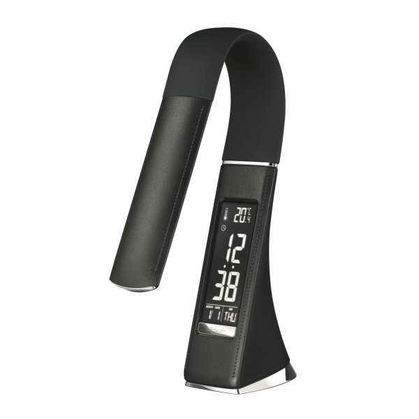 Ovládanie je riešené pomocou dotykového vypínača, pomocou ktorého si ľahko nastavíte intenzitu svetla podľa aktuálnej potreby. Praktickým doplnkom je integrovaný LCD displej, ktorý zobrazuje čas, kalendár aj teplotu v miestnosti. Tlačidlá na nastavenie kalendára sú diskrétne umiestnené na spodnej strane lampy, takže nenarušujú čistý vzhľad.