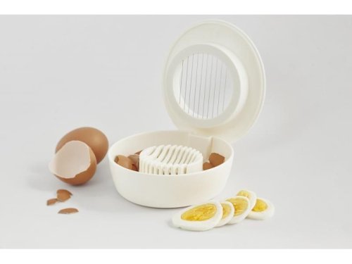 Ideálna pre tenké plátky vajec, s integrovanou miskou pre škrupiny.