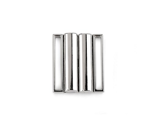 Kovové zapínanie sa skladá z dvoch dielov a zapnete ho vsunutím jedného dielu medzi druhý. Využijete ho na plavky, ale aj na výrobu opaskov. Povrch je odolný voči korózii. Rozmery jedného dielu spony sú 21 x 33 mm.