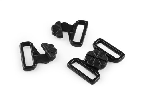 Plastové zapínanie s dizajnom kvetu využijete na plavky. Zapína sa vsunutím jedného dielu medzi druhý diel a zacvaknutím. Rozmery jedného dielu spony sú 22 x 22 mm.