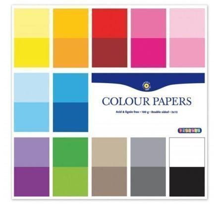 Farebné papiere 305x305 mm, 24 listov, 180g, obojstranné